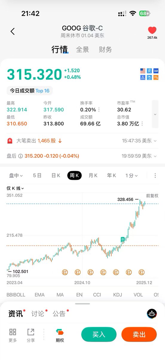$GOOG :183美元买入Google,当时全网都在骂谷歌搜索不行了,股价也一直不涨,估值是七巨头中最便宜的,但是呢,从过往经验来看,越是这种情况,越容易有非共识的alpha机会,所以买了,买了之后才渐渐知道TPU这个概念。