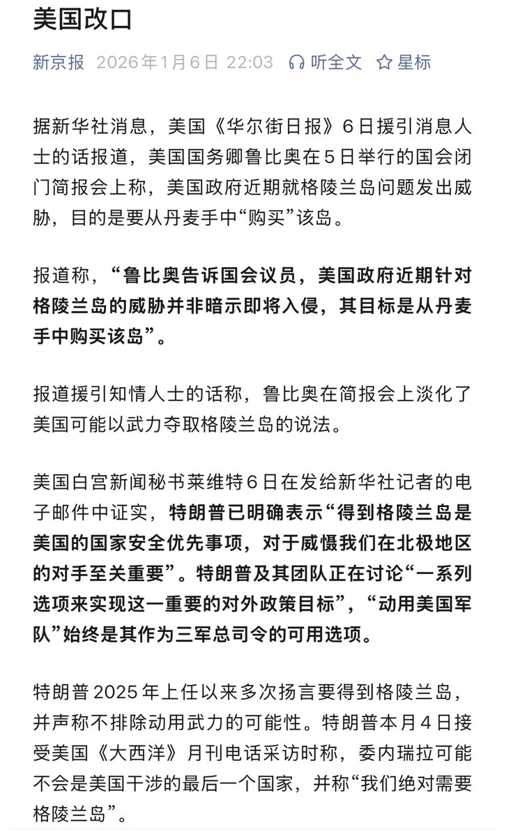 关于美国要拿下格陵兰的一些消息,我先保存在本系列。/1