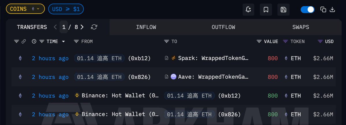 归属于同一人的两个地址 2 小时前追高建仓 1600 枚 $ETH ,价值 532 万美元,提出均价 $3327