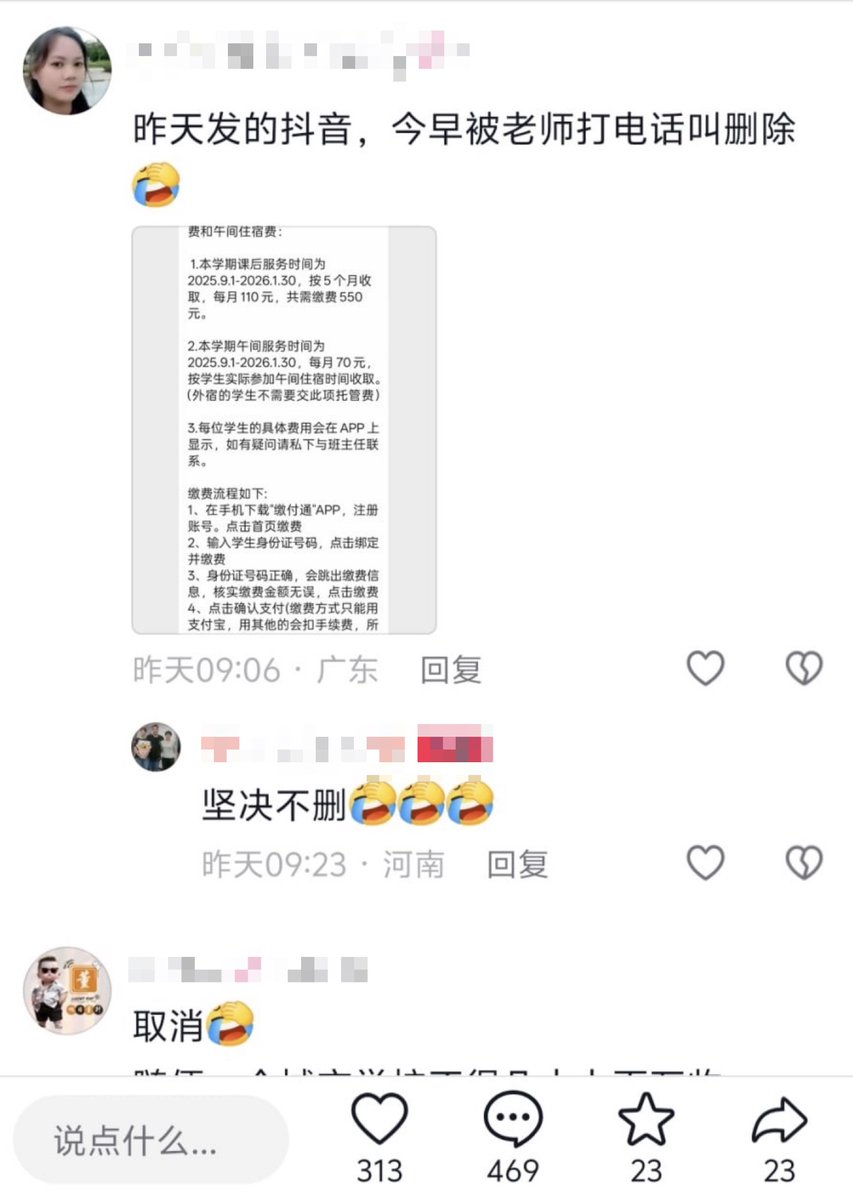 如果收费行为合法合规,理应由学校或教育主管部门出面作出公开说明,而非通过私下电话要求家长删帖,这一做法本身令人质疑。