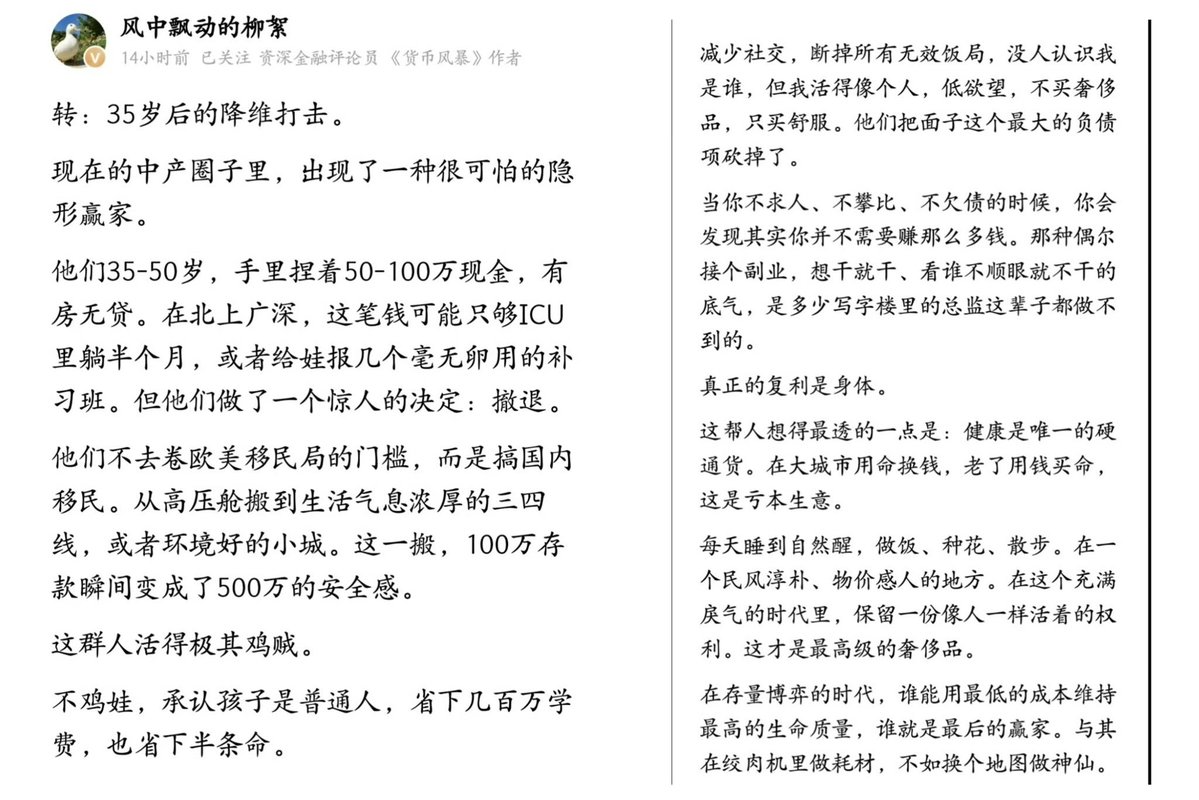 认识一个女人,我在广州做记者的时候,她在酒吧唱歌。30岁的时候,她去了大理,开了一家民宿,收入不多,但逍遥自在。50岁的时候,到了美国一个小城市,租了一套房,当二房东,所有租金够给房主交房租了,等于自己免费住。她说她的存款有5万美元,足够自己慢慢活很长时间。她一直单身。
