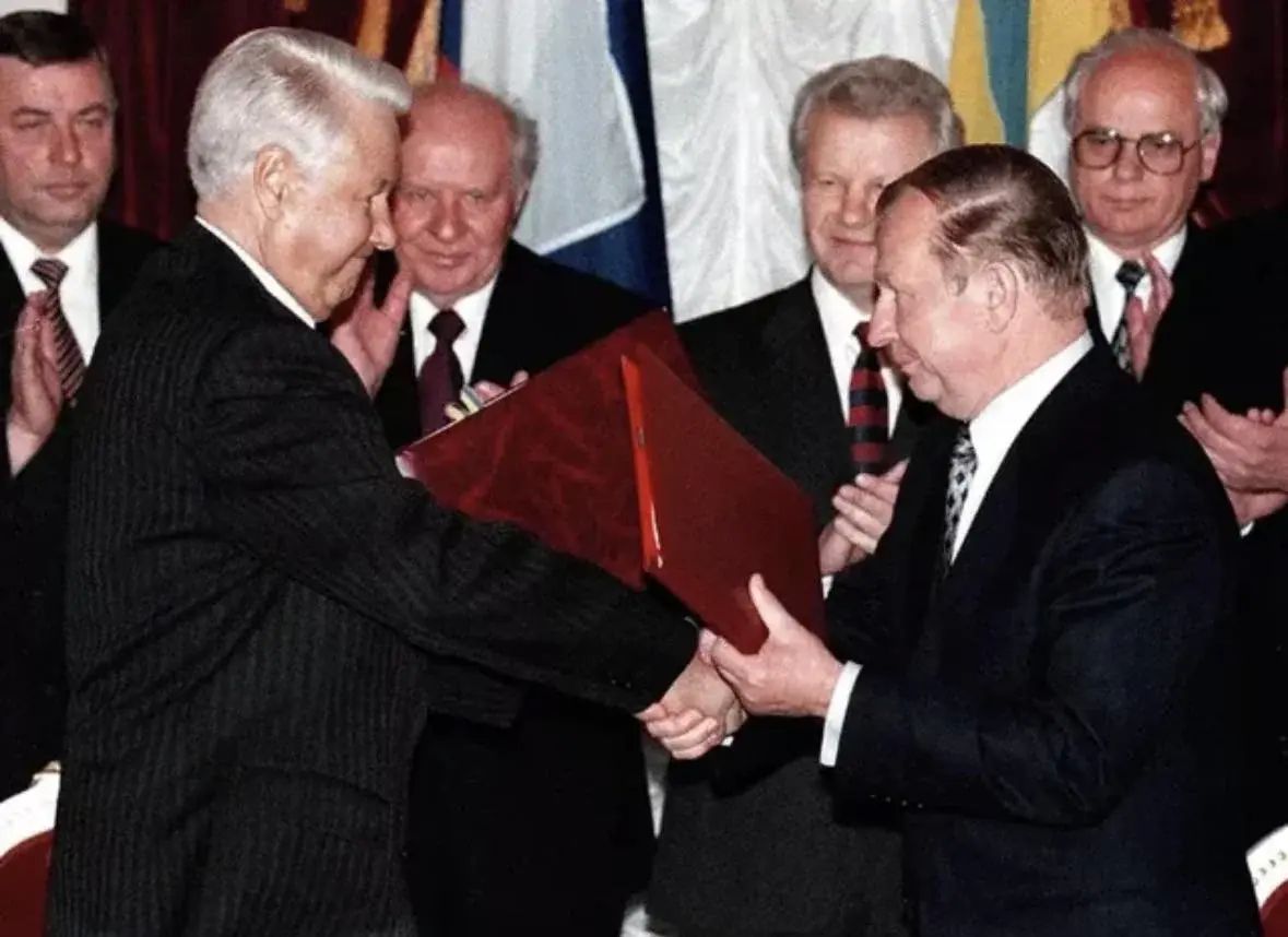 In 1996 Ukraine handed over nuclear weapons to Russia "in exchange for a guarantee never to be threatened or invaded"