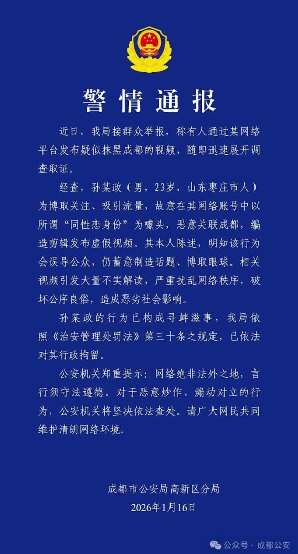 网友投稿:近日,成都连发三条通报,集中整治自媒体将成都“恶意关联”同性恋。