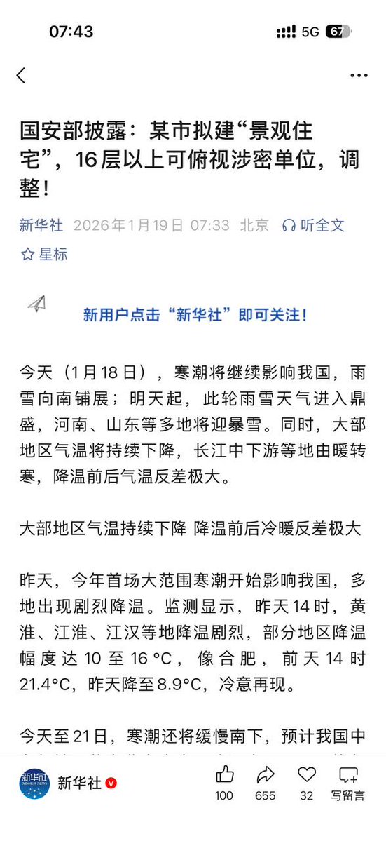 网友投稿:1月19日,新华社微信公众号发布的一篇文章出现明显异常,标题与正文内容严重不符,文章中段还夹杂乱码。