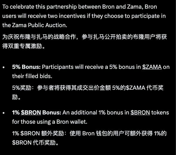 另外如果你使用Bron钱包参加公募会多个5%的 $Zama 和 1%的 $Bron 代币(虽然可能不值什么钱),然后如果你钱包地址里有Zama NFT 还能多获得5%,看官网意思是可以叠加到10% Bouns(NFT在OS上售价0.015E/个)。