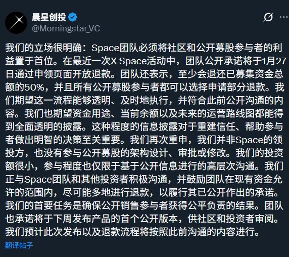 我投了1W,目前还没收到任何退款,如果收到了,我打算拿出来按比例发给通过我链接参加了Space公募的小伙伴吧。