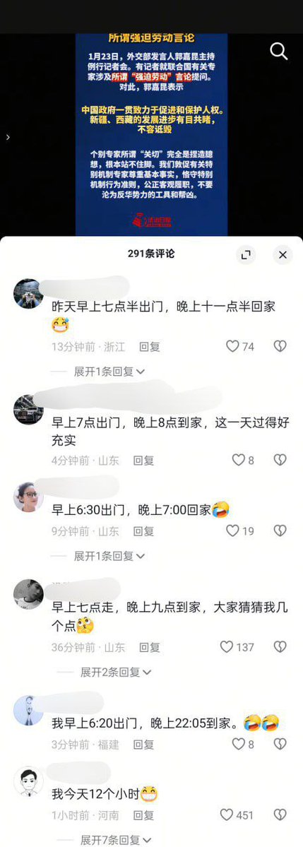 评论区中,几百个网友以个人超时工作“11个小时、12个小时”的经历“对号入座”,集中表达对现实劳动强度的反讽与不满。