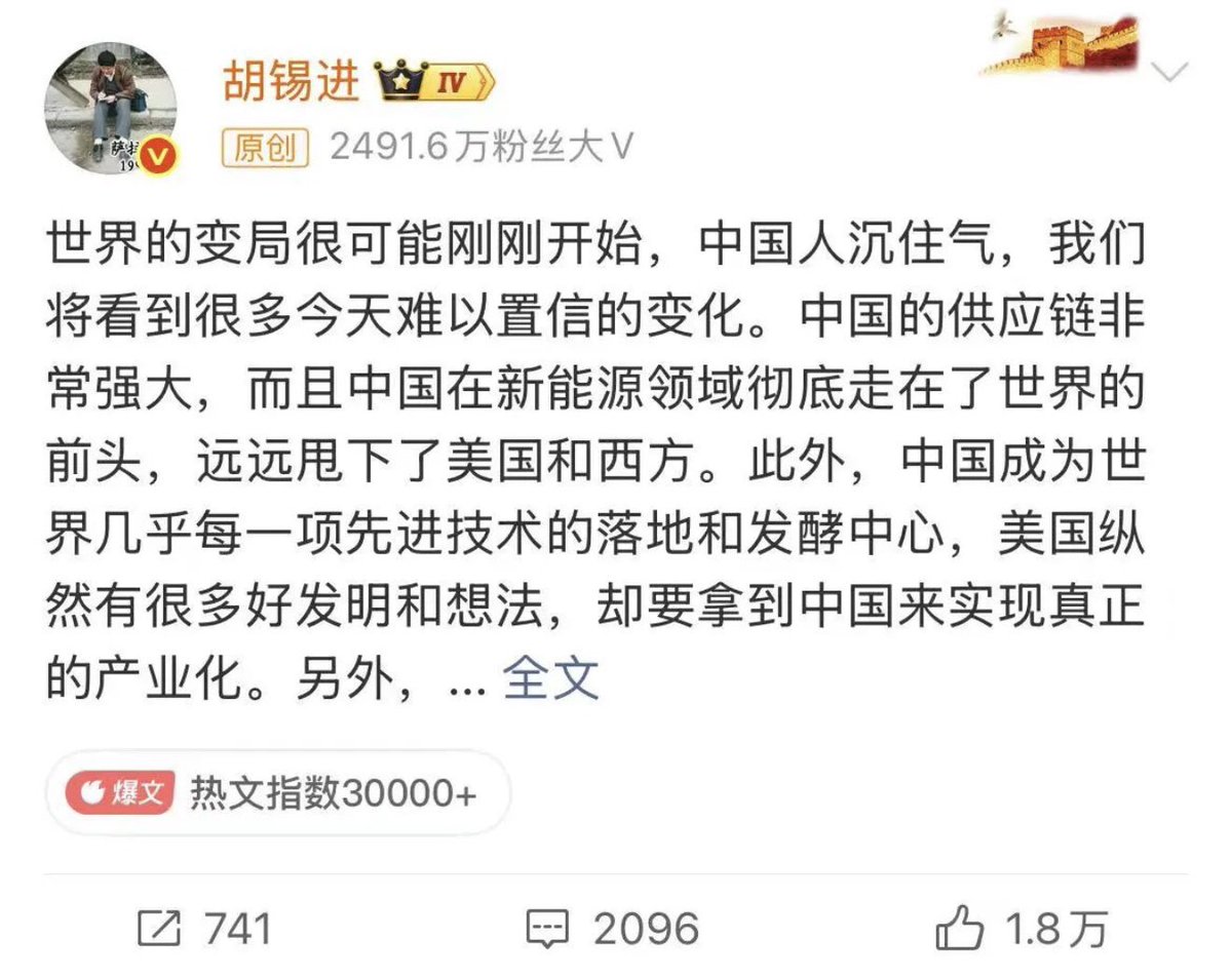 胡叼盘发微博了,老小子话里有话