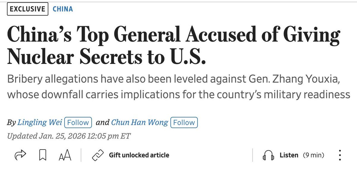 Ling Ling Wei's weekend exclusive on Xi's military purge reads like a CCP info op.