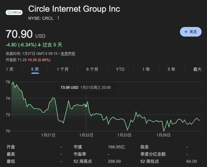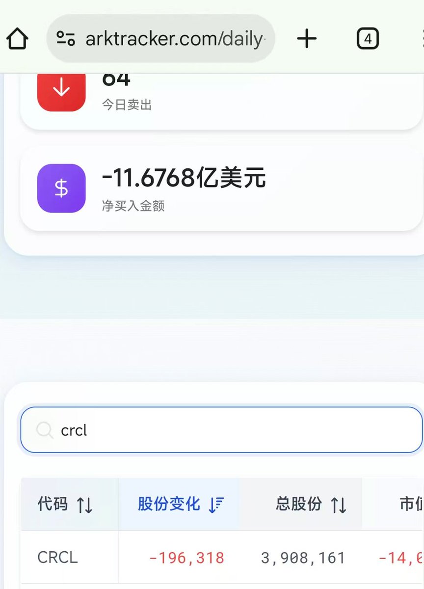 现在 $Crcl 股价自159高点跌了超过50%,昨天木头姐的基金还减持了近20万股,今天消息出来后holders估计会更难受了。
