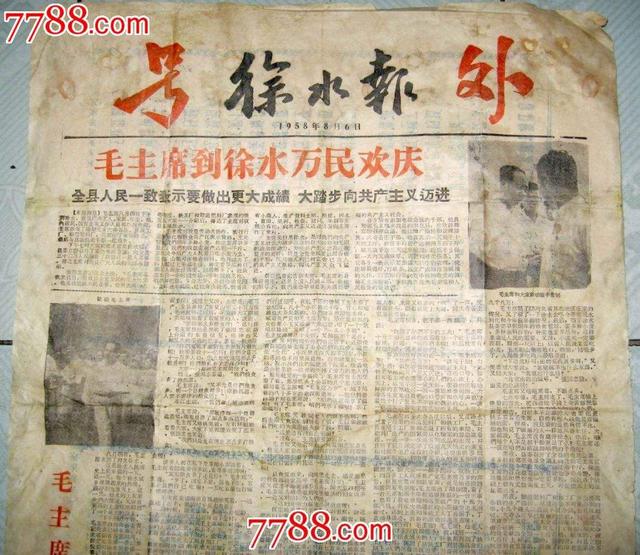 吃五顿饭1958 年 8 月 4 日,毛泽东到河北省徐水县第八瀑河农业社视察。村里墙上画着鲜艳的壁画:年轻人攀着刺破蓝天的玉米秸爬上天空;老汉乘着比船大的花生壳,飘洋过海,周游世界;嫦娥从月宫下凡,到农田采摘斗大的棉桃……县委书记汇报,今年全县平均亩产麦子达到 2000 斤,总产量达到 12 亿斤