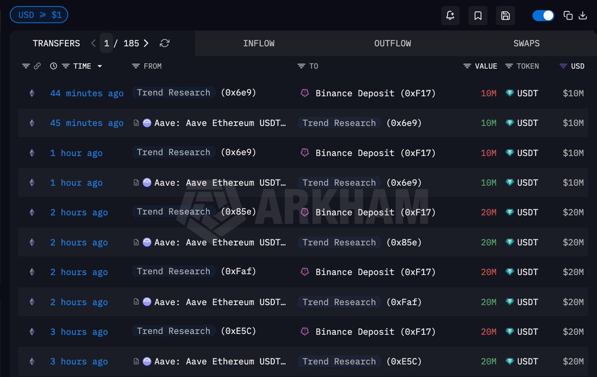 前脚刚突破 3000 美金,后脚 Trend Research 又从 Aave 借出 8000 万枚 USDC,或准备加仓 ETH;该机构的 661,272.65 枚 $ETH 成本约 ~$3,104.36,目前浮亏收窄至 5578 万美元