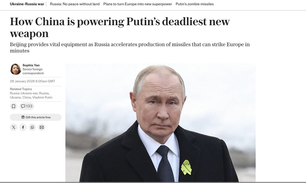 ‼️ China helped Russia ramp up production of “Oreshnik” missiles — The Telegraph