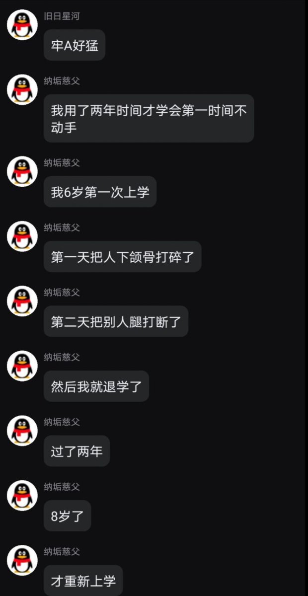 #牢a 自述六岁第一次上学,第一天把人下颌骨打碎,第二天把人腿打断,所以导致他小学一年级退学两年😅😅😅