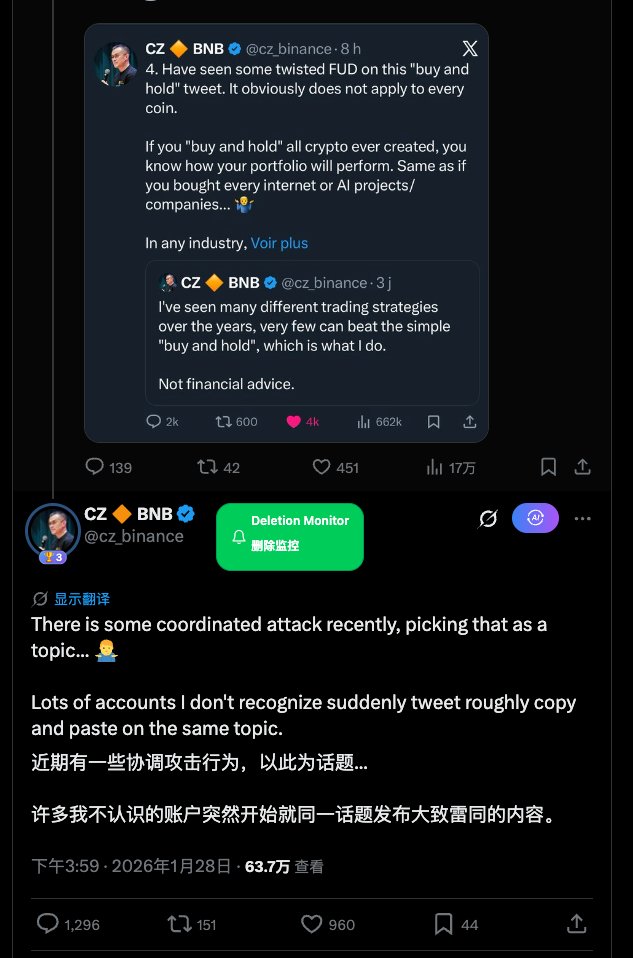 A16Z振聋发聩的宣言还在耳边,要确保美国在Crypto上击败中国,这波趁木头姐提1011英文区就开始集火,甚至连CZ 说“Buy and Hold”的推文都能被略显雷同的FUD内容淹没,要说不联想到点阴谋论都说不过去。