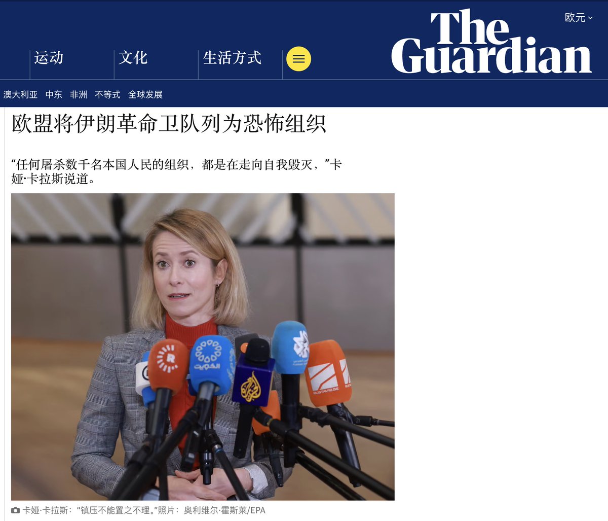 1月28日,欧盟将伊朗伊斯兰革命卫队列入恐怖组织名单