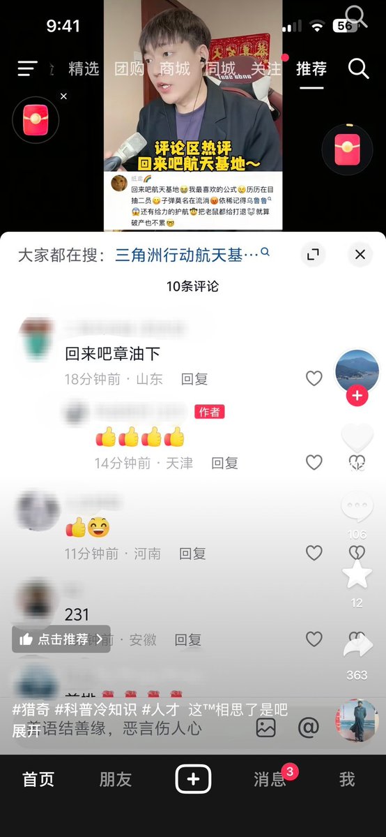 抖音评论区: