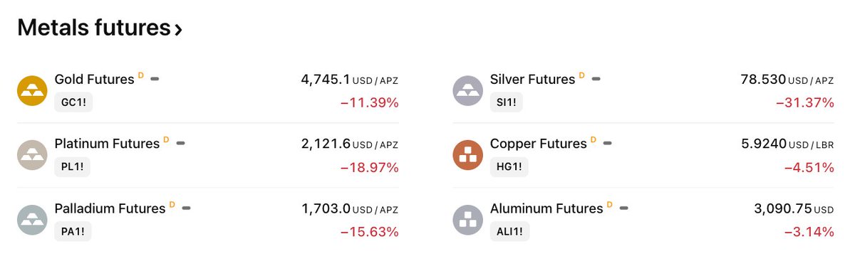全球贵金属市场加速抛售,创 40 年最大单日跌幅📉
