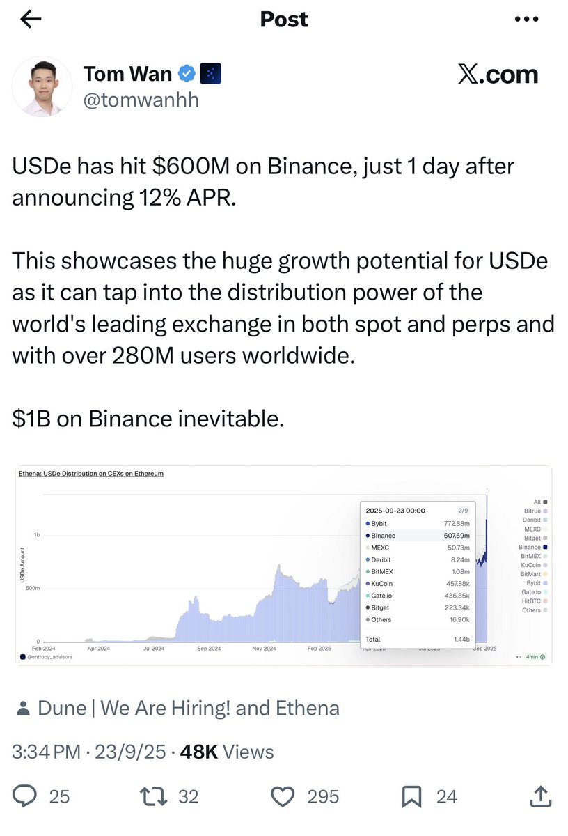 Star早起,剑指币安。 认为 10 月 11 日加密闪崩是币安不负责任的 USDe 理财活动导致的。 总结一下就是: 币安提供12% USDe年化收益并允许其作为保证金,引发用户将USDT/USDC大规模转换为USDe。 用户利用规则进行循环借贷(Looping),人为制造高达70%+的年化收益,导致系统性风险隐蔽积累。 市场波动触发USDe脱钩,引发WETH、BNSOL等资产的连环清算,造成全球范围内的严重亏损。