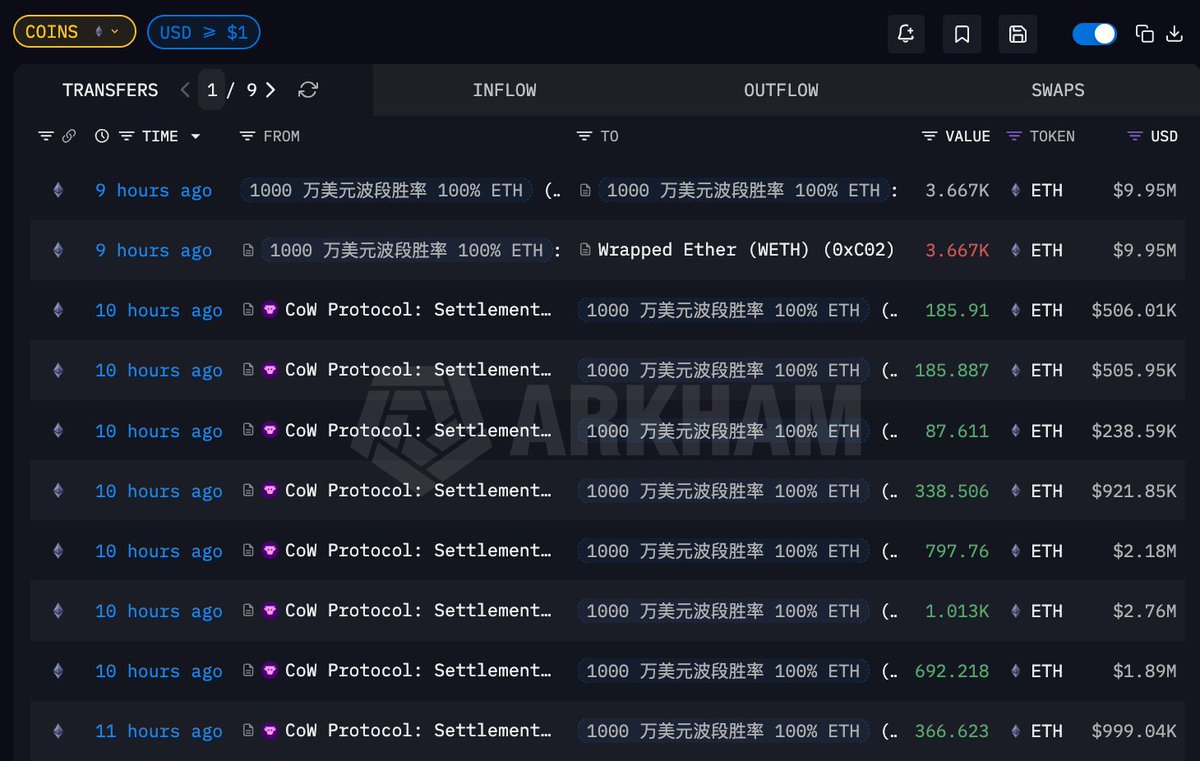 地址 0x54d...e6029 11 小时前以均价 $2725.67 买入 3667.51 ETH,价值 999.6 万美元;目前该地址已持有价值超 2.2 亿美元的 ETH