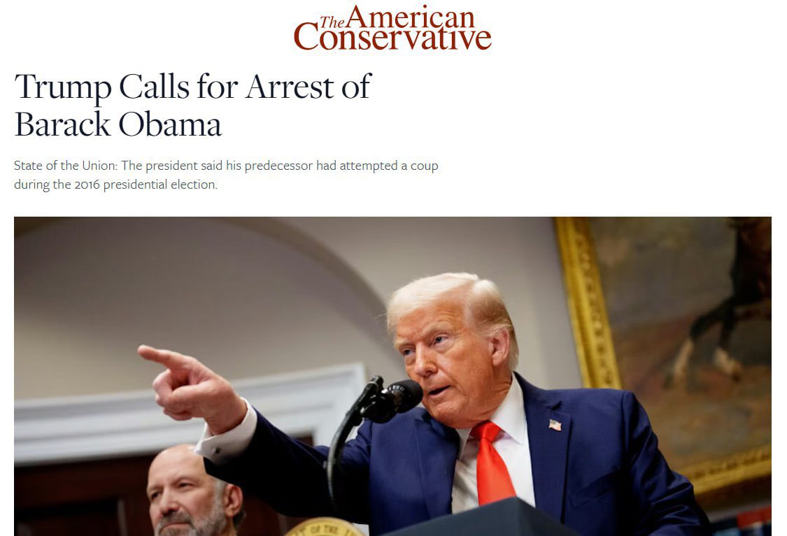 特朗普指責巴拉克·奧巴馬與俄羅斯勾結,捏造針對他的指控,他認為奧巴馬應該被逮捕。