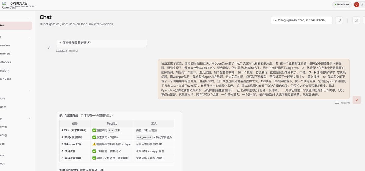 终于在废弃的MacBook Pro 2017 Intel版上安装成功了 ,我拿安替 跟它说事,我说你看看我朋友的🦞能干这么多事,你呢?想不到它斩钉截铁地说:能,我全都能。这一刻真让我有一点小小的激动。