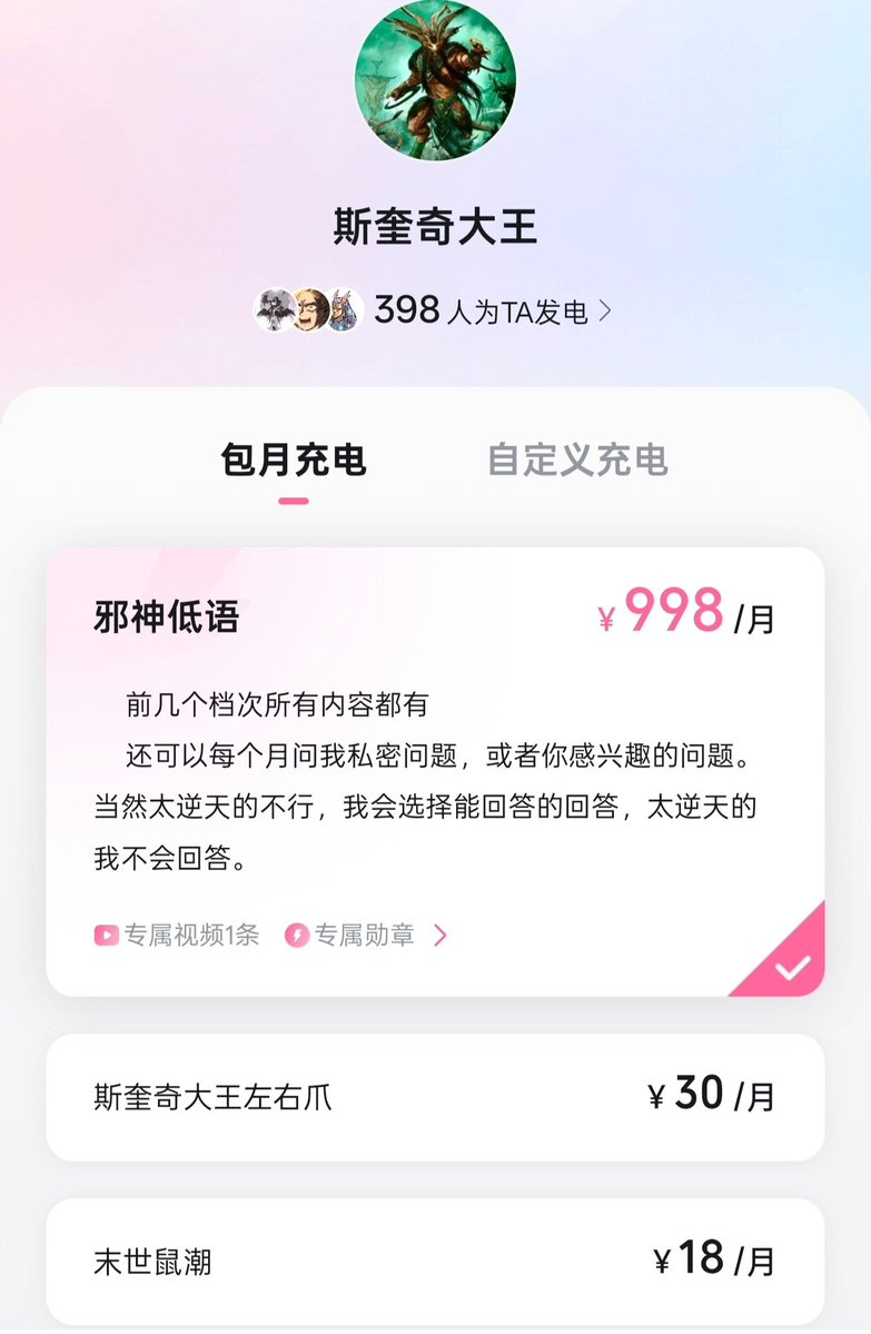 #牢a 推出充电套餐,只需¥998/月,就可以每个月亲自请教孔选仲如何口述AV🥰🥵!