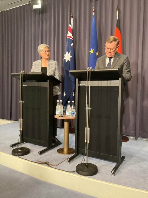 Penny Wong and German FM Johann Wadephul presser in Canberra
