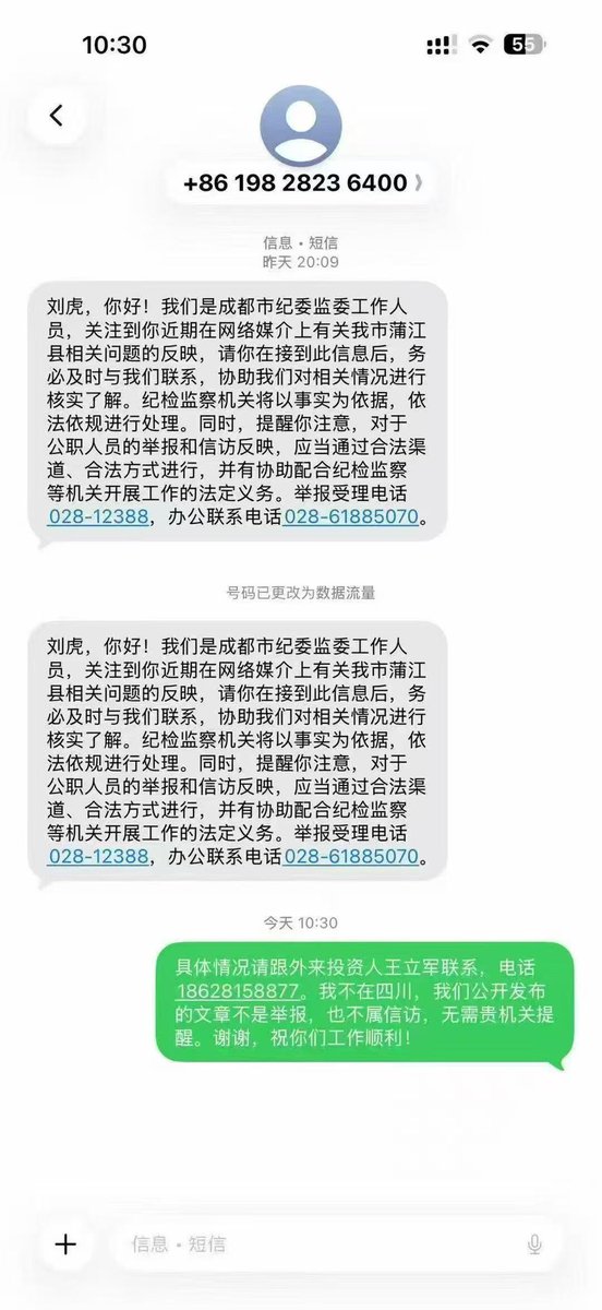 我突然意识到,成都市纪委监委给刘虎发的那两条短信,说不定客观上给他挖了一个坑。他如果真的“通过合法方式,合法渠道”举报控告了蒲书记,那就正好被搞个“诬告陷害罪”。但他没上这个当,没跑去搞控告,那咋弄他这个“诬告陷害罪”呢?