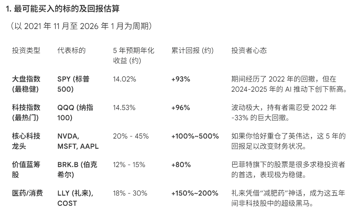 而美股无论是买大盘指数,还是龙头科技股、价值股还是医药股,回报都也很优秀。
