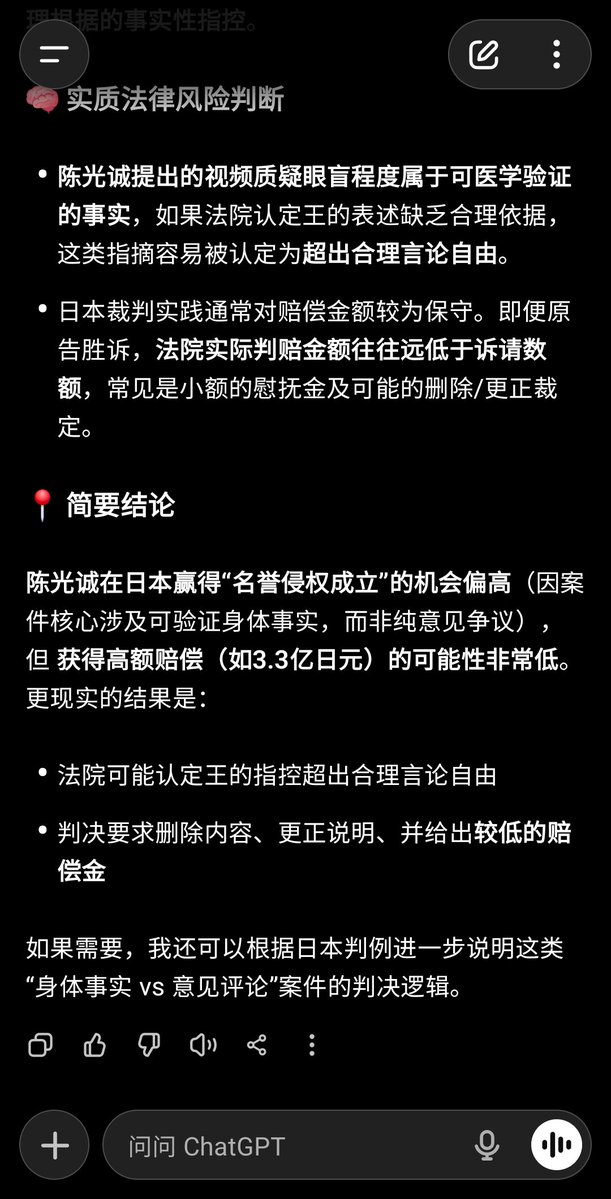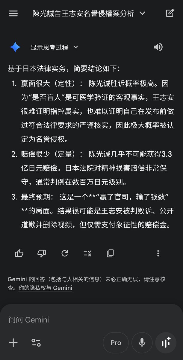 我把 #陈光诚诉王志安 造谣诽谤的案件相关信息喂给了Gemini,chatGPT和grok三个AI
