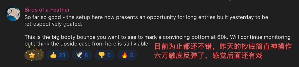 他在 tg 群表示:就当前行情看,昨天的抄底简直是「神操作」,而 $BTC 下跌至 6 万刀后触底强劲反弹,会继续观察,感觉后面还有得玩