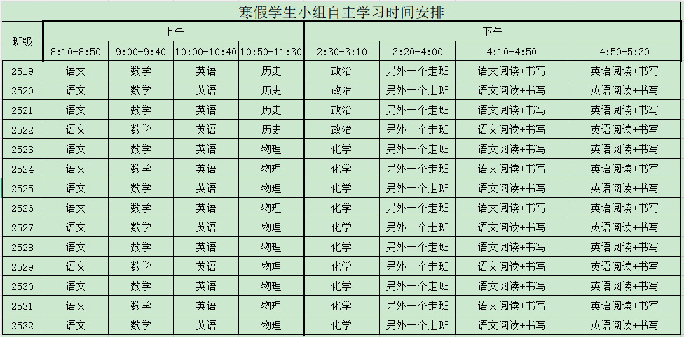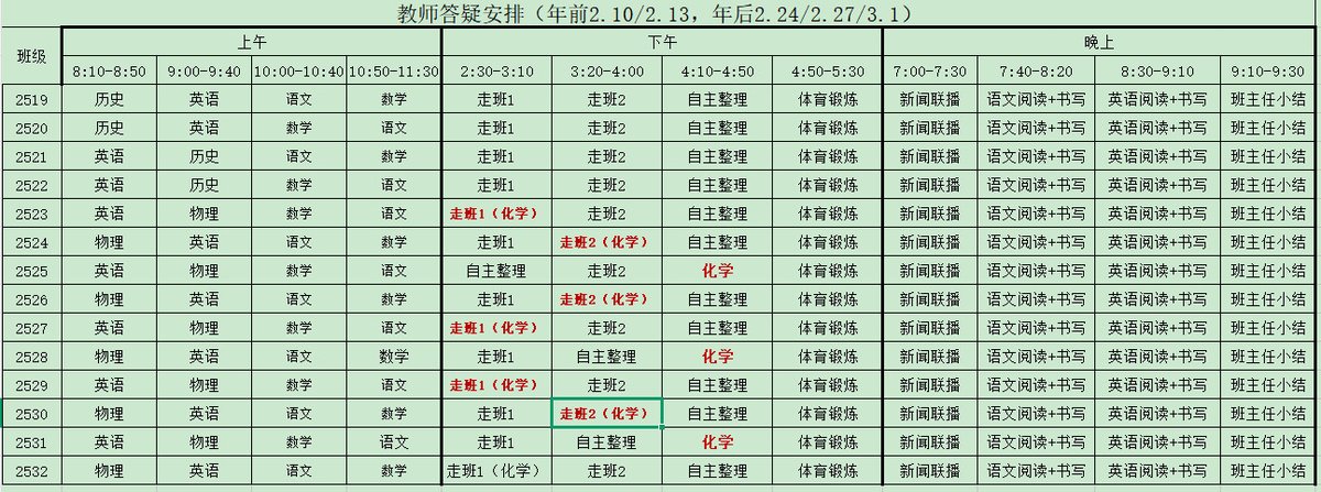 老师特别注明不能将该该安排表上传至网络。