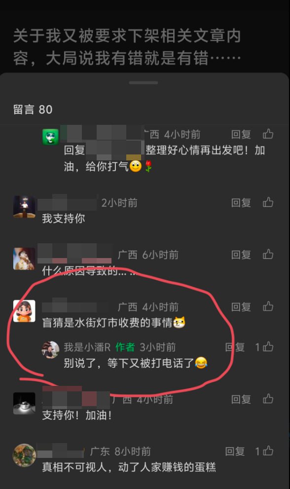 网友投稿:国内博主发文吐槽广西南宁市水街灯市收费问题,称短短一段路程竟被收取45元费用。相关内容发布后,其本人反映接到当地有关部门来电威胁。