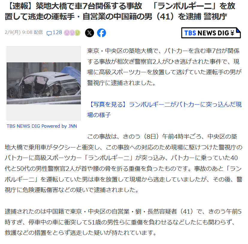 41嵗的「自營業 」者劉長然,預計會出現在今天各大日媒社會版的關鍵位置。劉先生「自營業」一定非常成功,能開上千萬日元的超跑,建議順帶開自媒體分享成功秘訣,我們非常期待。
