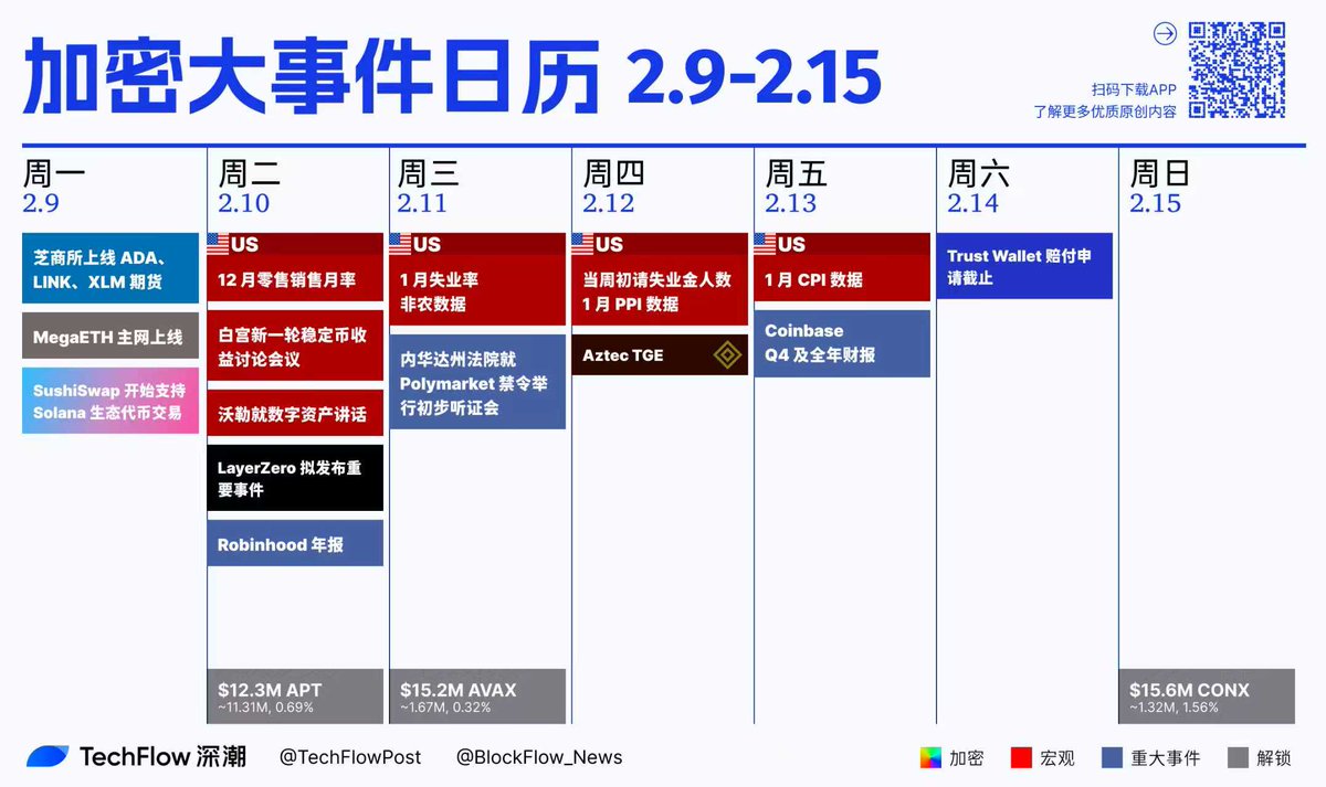 🔵 $AVAX 将于 2 月 11 日解锁 167 万代币,价值约 1520 万美元,占流通量 0.32%