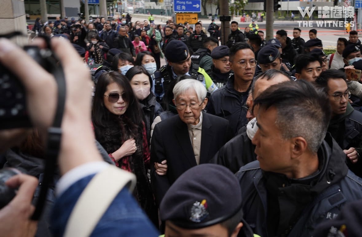 (2/) 妻子特蕾莎紧抿双唇擦拭眼泪,儿子奥古斯丁轻拍她的背部。庭审结束后,前苹果日报员工在法院外相拥而泣。