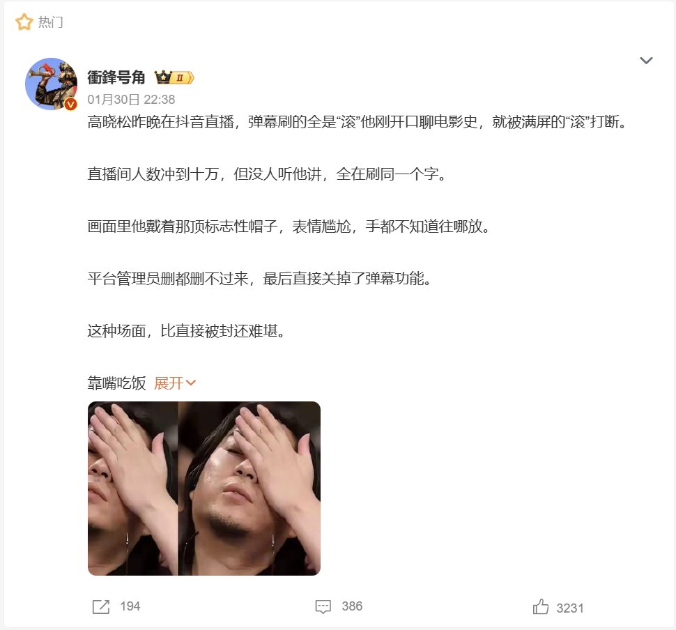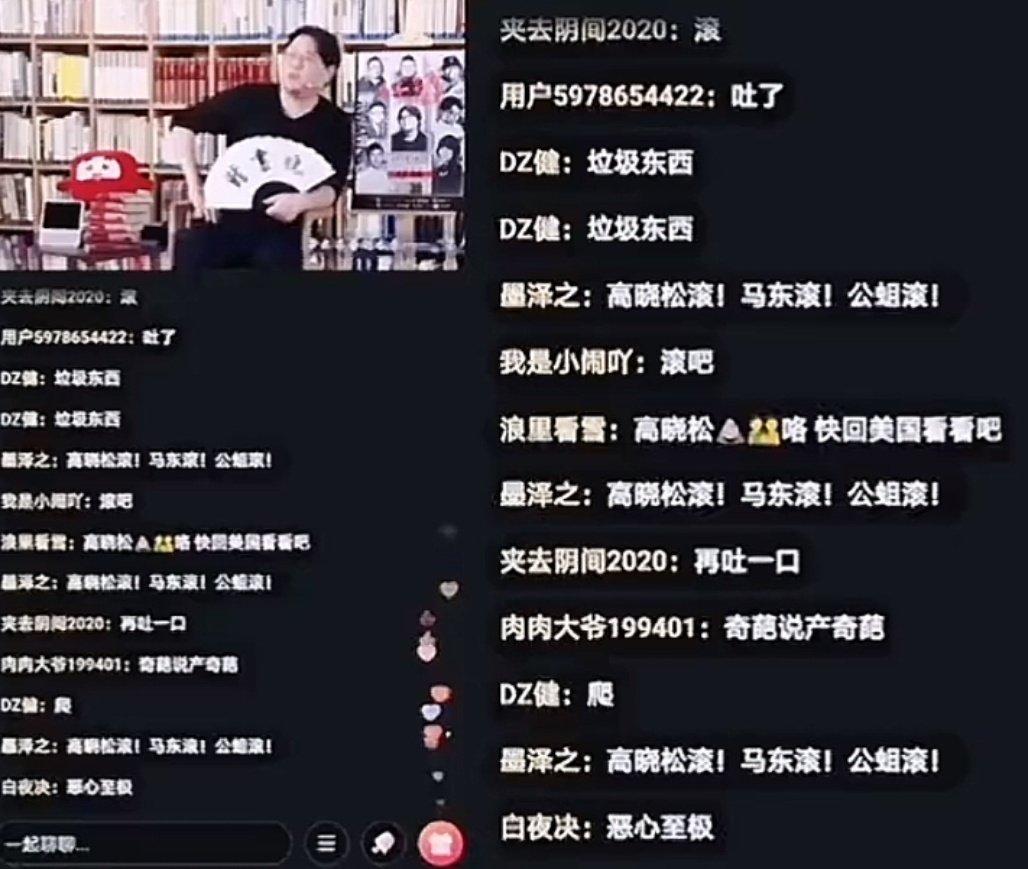 近日,网传高晓松在抖音开直播,弹幕刷的全是滚,最终平台管理员关掉了弹幕功能。