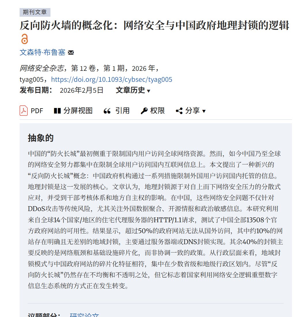 3、官僚体制驱动: 这并非中央的一键指令,而是碎片化的。地方官员为应对上级“防范数据聚合”和“反开源情报(OSINT)”的压力,宁可“过度执行”切断外部连接,以规避政治风险。