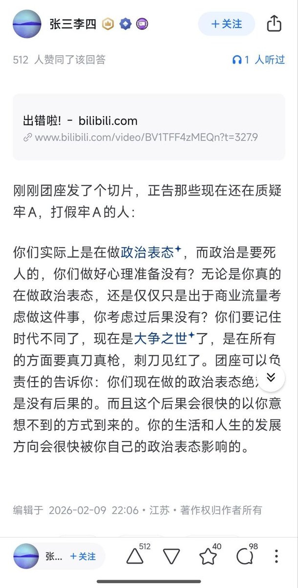 协助 #牢a 炒作大使馆协助逃回中国🇨🇳的自称退伍军官团座在直播称,中国不是因言获罪的国家,但是现在质疑牢a的人算一种政治表态,很快就会被中国政府斩杀😨