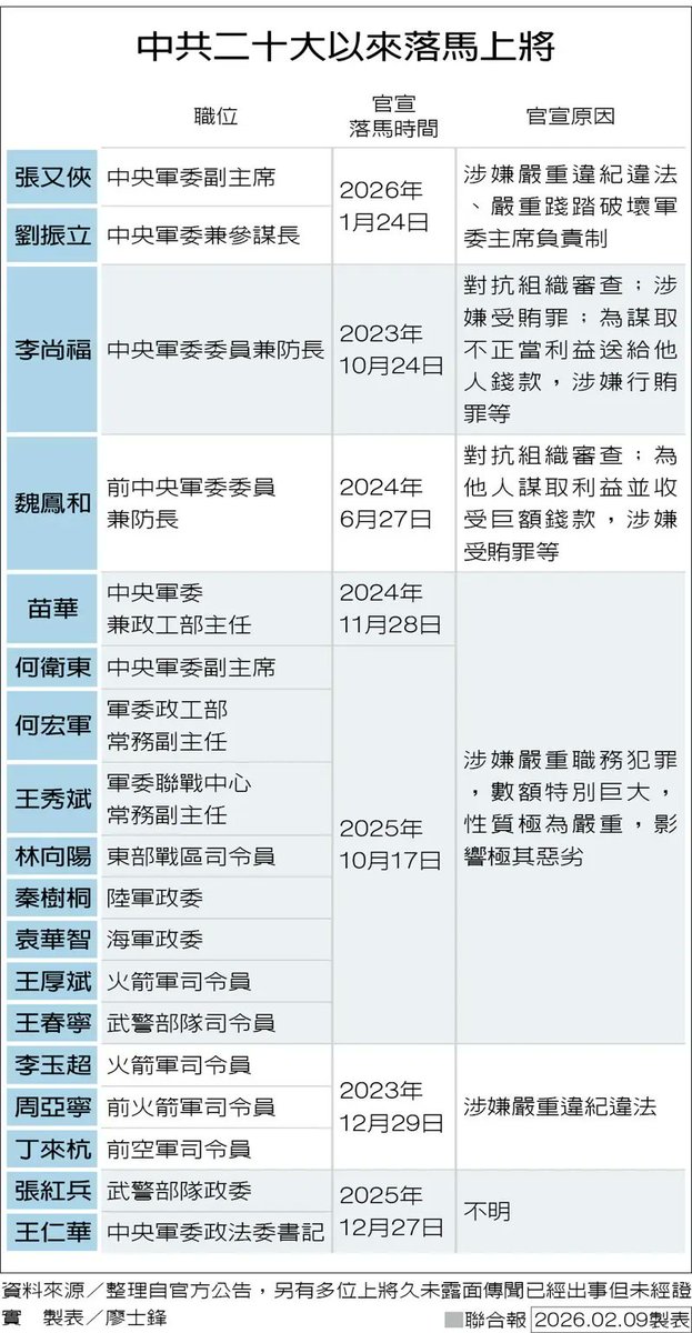 转贴:从三年前的中共二十大迄今,中共落马的上将一览: