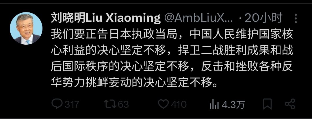 首页时间线上居然刷到了曾经点赞骚妻推文的刘晓明大使,发现他已经把我拉黑了🤔