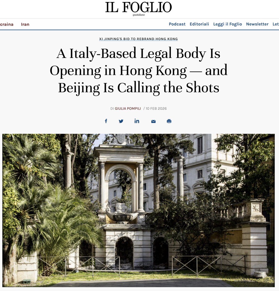 2025 年 7 月,香港律政司司长 林定国 前往罗马,向当地法律界与商界推介他口中“一国两制”框架下的香港“独特优势”。