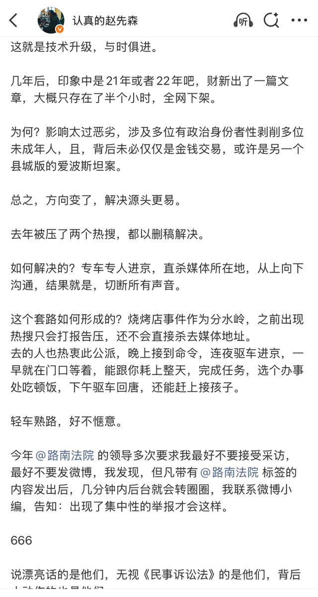 2月10日,一名博主讲述 “唐山市十年前和十年后是如何处理新闻舆情“ 的:十年前,粗暴简单,记者来了,专车,专门的酒店包间,当然不是公款,饭前会着重说明这顿饭是私人自掏腰包。几年后,某区多个代表被曝嫖宿卫校女生。