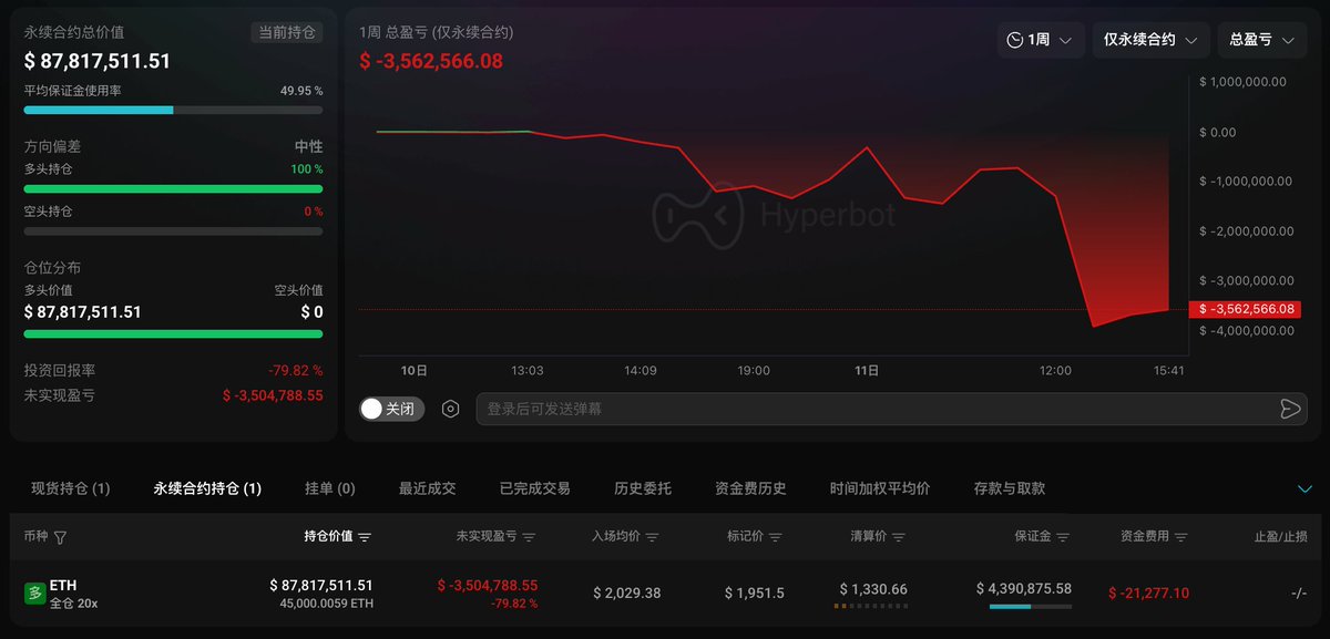 ▶︎ 地址 0x6C8…D84F6:持仓 4.5 万枚 ETH(8782 万美元),开仓价 $2,029.38,浮亏 350.4 万美元