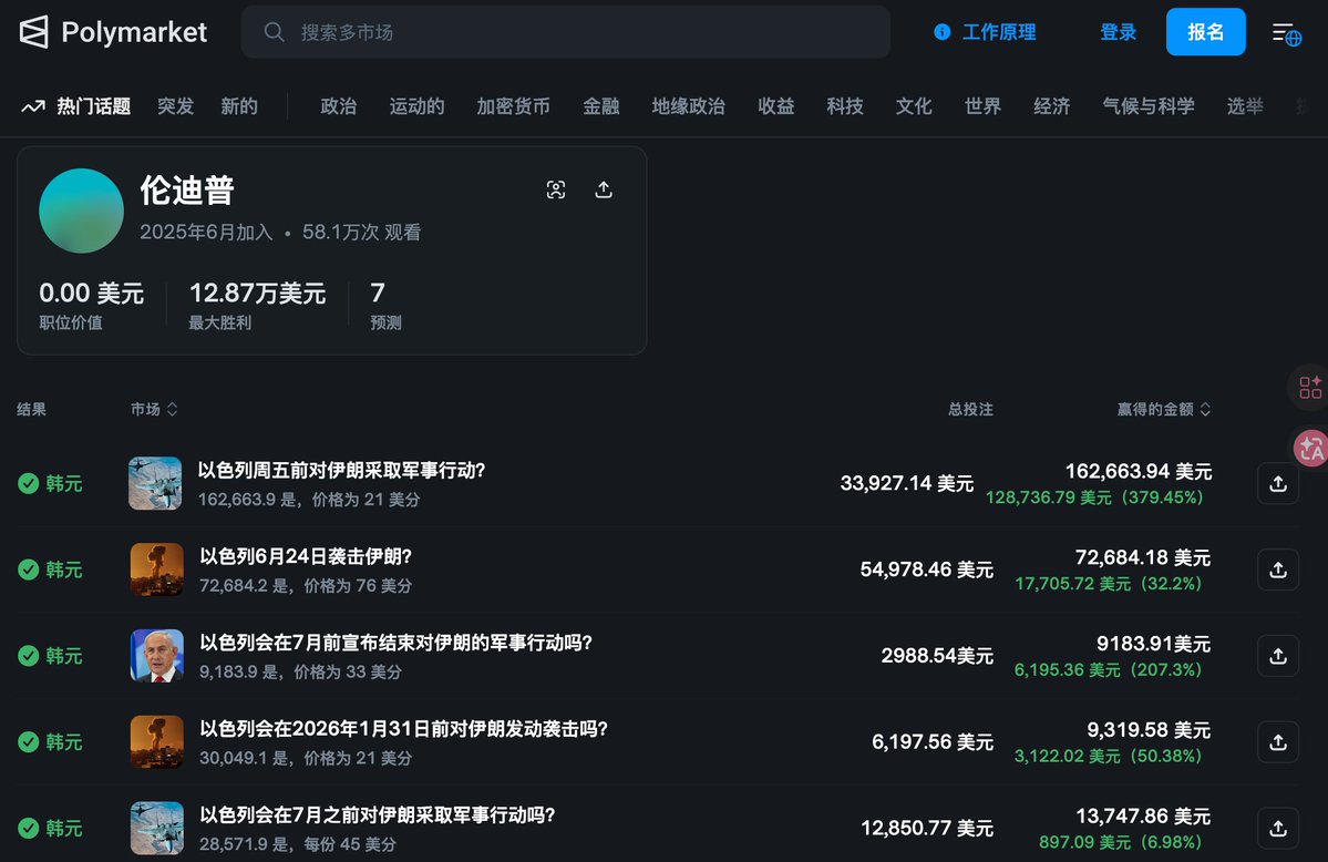好家伙,之前多次在Polymarket精准押注以色列袭击伊朗100%胜率的用户Rundeep居然被以色列安全局逮捕并起诉了,以色列通过对链上数据追踪和情报接触人员与通信的排查,最终锁定了两个人,分别是军人和平民,其中军人将接触到的以色列军事行动情报透露给了平民,让他去Polymarket进行透押注获利,根据媒体报道Rundeep这个账户就是两人合作一起运营的