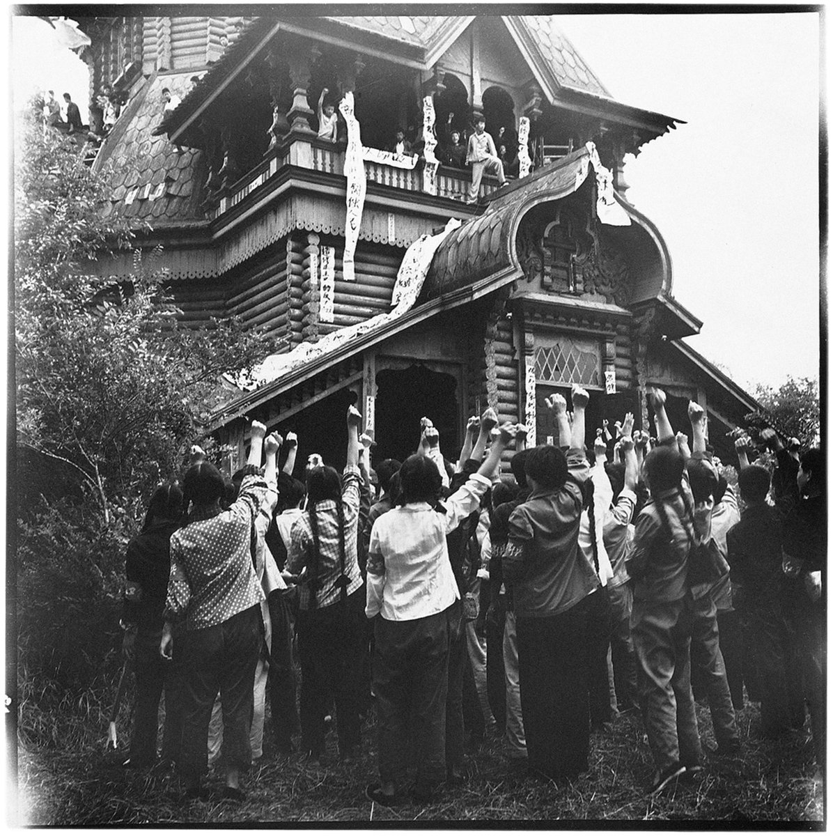 2.教堂被毁前,红卫兵们纷纷爬上圣尼古拉教堂的高处高呼口号,发表革命演讲。