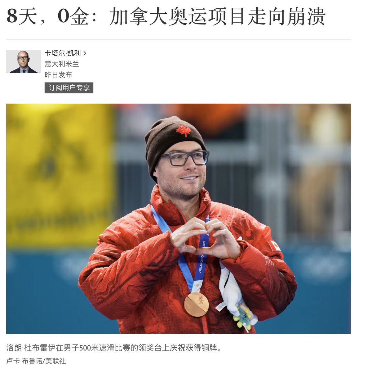 加拿大和中国,同样是冬奥会0金牌,刚看了下加拿大媒体,直接抨击加拿大在冬奥上已经彻底失败