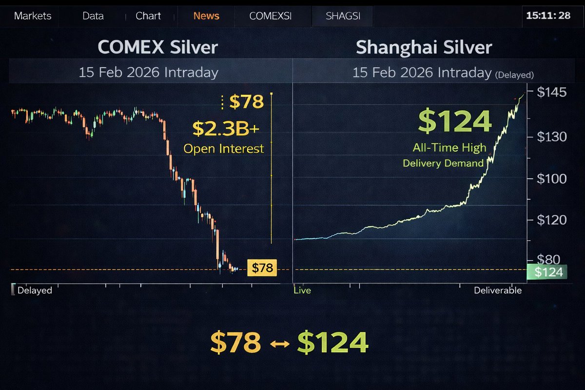 这种情况前所未有。在接下来的 24 小时里,白银将走到一个“数学已经说不通”的临界点:COMEX 期权到期时,尚有超过 23 亿美元的未平仓合约。与此同时,上海的交割申请创下历史新高。现在有 340 吨白银“要求交割”,而这个市场根本没有这么多现货金属可以提供。现在把这些点连起来:COMEX 库存大约