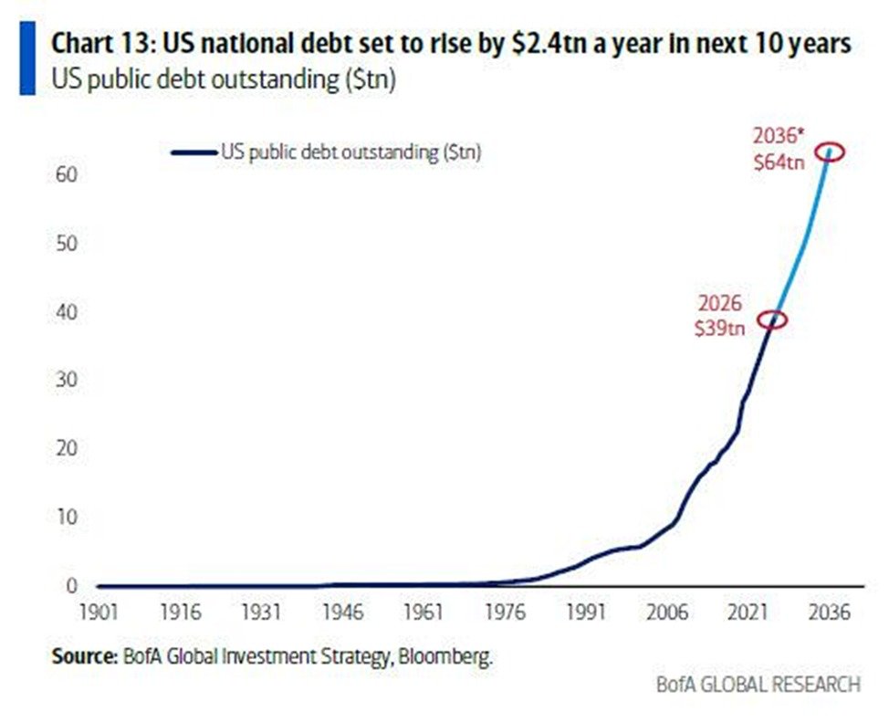 As a result, US debt will likely reach a record $64 TRILLION in 2036, doubling from 2023 levels.